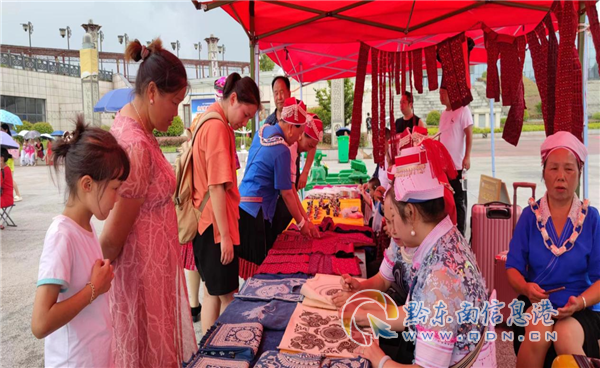 走進(jìn)非遺展示區(qū),這里內(nèi)容豐富多彩,泥哨、銀飾、苗繡、蠟染等多項(xiàng)非遺文創(chuàng)產(chǎn)品集體亮相,做工精細(xì)、色澤悅目,吸引許多群眾圍觀欣賞。非遺傳承人向他們講解這些工藝品背后的傳統(tǒng)技藝與故事,讓非遺文化變得更加鮮活了起來(lái)。