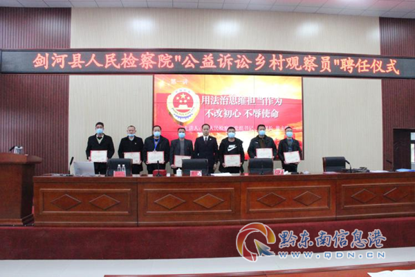 儀式上,檢察長黃卡鐵宣讀了劍河縣人民檢察院《關于聘請劉永發等25人為“公益訴訟鄉村觀察員”的決定》,并為受聘的觀察員頒發聘書。檢察長黃卡鐵表示:希望各位“公益訴訟鄉村觀察員”能夠充分發揮自身立足基層、聯系群眾更為密切的優勢,積極支持和配合檢察機關開展公益訴訟工作,更好的回應人民群眾對美好生活需求的關切。