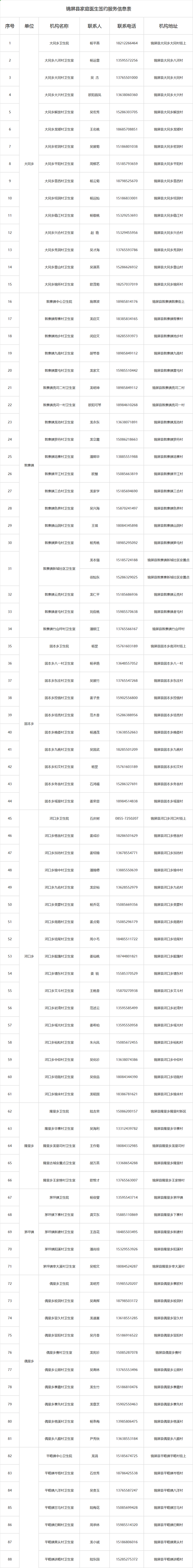 錦屏縣家庭醫(yī)生簽約服務團隊信息和服務指引公告