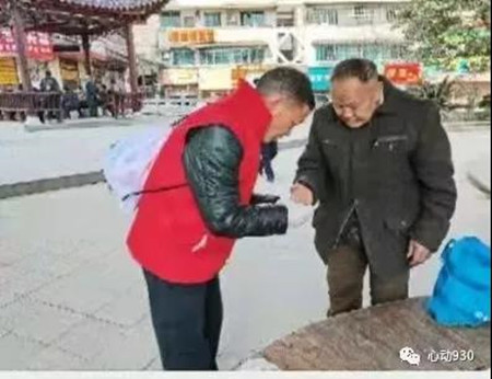 在回老家凱棠鎮大坪村的途中,楊再義特意招呼志愿者在一個鎮上“剎一腳”,他想去買點爆竹以示慶賀,當爆竹店老板得知老人是為迎接30年未見的兒子回家時,也為老人感到高興。