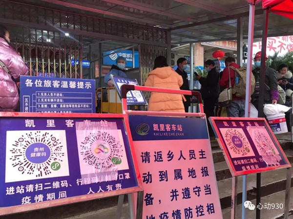 在凱里各車(chē)站公共區(qū)域的LED顯示屏上、車(chē)載廣播里、發(fā)放的宣傳單中,有不少關(guān)于凱里市春運(yùn)和防疫的宣傳。車(chē)站門(mén)口放置了疫情提示板,介紹了返鄉(xiāng)人員核酸檢測(cè)點(diǎn)詳細(xì)情況和流程,滿足群眾出行需求。