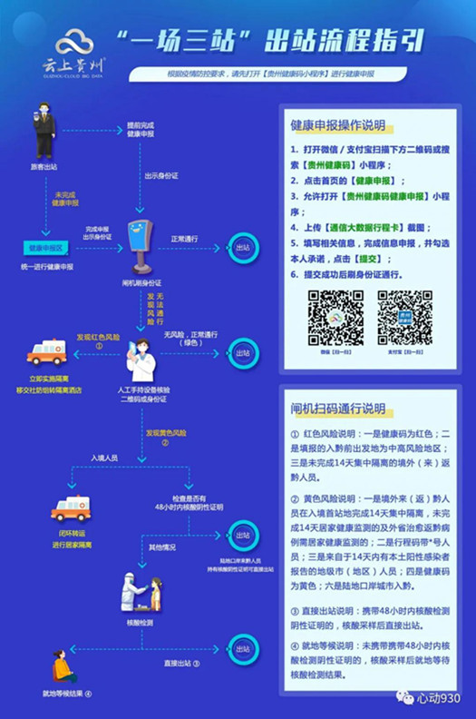 據(jù)了解,升級后的系統(tǒng)以貴州健康碼健康申報小程序為基礎(chǔ),依托 " 一場三站 " 所部署的閘機、手持終端等對人員身份信息進行核驗,實現(xiàn)來返黔人員出站(港)快速分流處置,減輕旅客紙質(zhì)填報的負擔。
