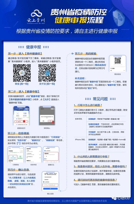 上述系統(tǒng)升級后,用戶在凱里 " 一場三站 " 可用微信 / 支付寶 APP 打開 " 貴州健康碼 " 小程序進行 " 健康申報 " 即可完成入黔申報認證及二維碼領(lǐng)取,該系統(tǒng)將對來返黔人員進行精準識別、分類處置,提升疫情防控精準度。