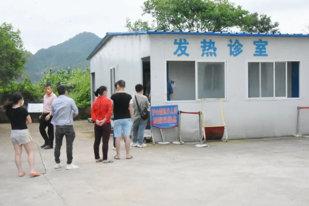 另一邊的凱里市爐山鎮衛生院發熱診室,10余名群眾正在排隊做核酸采樣。