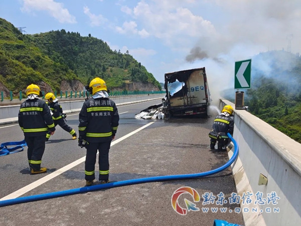 本網訊 7月6日中午12時40左右,在黔東南州S07凱里繞城高速插旗山大橋上有一貨車自燃起火。接到報警后,凱里市消防救援大隊消防救援人員迅速趕往現場。