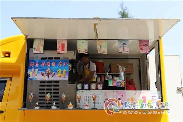咦!充滿花香的空氣里似乎還有一股熟悉的美味?仔細觀察,公園步道的入口和轉角處,還有一排整整齊齊的美食攤點。原來,這里還有燒烤、涼皮、涼面、奶茶、冰淇淋……哇!吃喝玩樂,應有盡有,真是完美了。