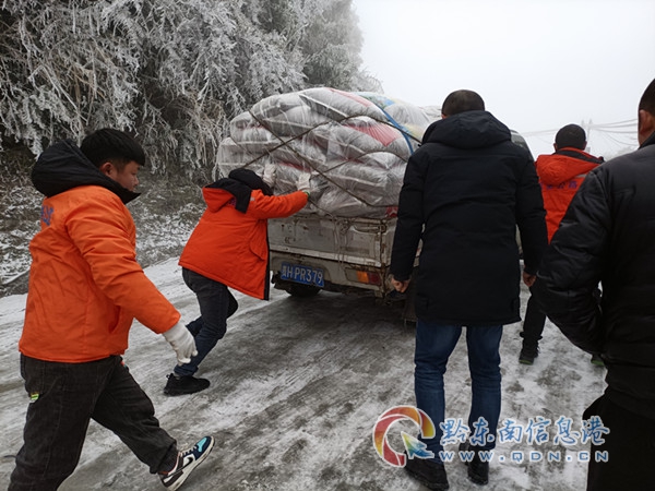 在省道S204線,凜冽的寒風(fēng)和結(jié)冰的路面,使除冰工作變得艱難,雷山公路管理段利用機械+人工的方式,噴灑融雪劑和工業(yè)鹽,在零下的寒風(fēng)中,分工有序地清理結(jié)冰路面;路遇到受困的群眾車輛,大家紛紛上前幫忙救助,這一刻在一片白皚皚的雪景中,干群齊心協(xié)力的背景顯得尤為動人。