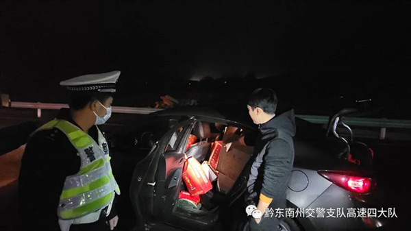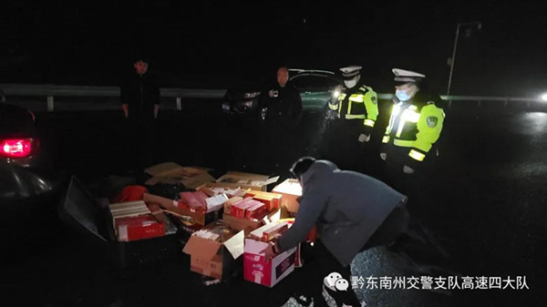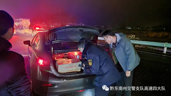 2022年1月5日23時許,高速四大隊接到劍河縣煙草專賣局提供的線索,一輛浙J籍牌照的車輛涉嫌無證運輸煙草專賣品。接到線索后,值班民警隨即向大隊領導進行匯報,領導高度重視,迅速做出指示,要求快速啟動應急處置工作機制,迅速派警布警,在劍河往湖南方向多處設卡對目標車輛進行攔截,同時借助集成平臺對目標車輛行車軌跡進行實時跟蹤。