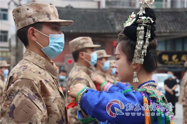 3月15日,施秉縣2022年春季新兵出征儀式在縣人武部舉行,29名新兵將從這里整裝出發(fā),奔赴軍營。在舉行簡單的儀式之后,村民們身著苗族盛裝,敲鑼打鼓、歡唱苗歌,以苗族特有的方式歡送苗族青年奔赴軍營,滿滿的儀式感是對“參軍光榮”作了生動而形象的詮釋。