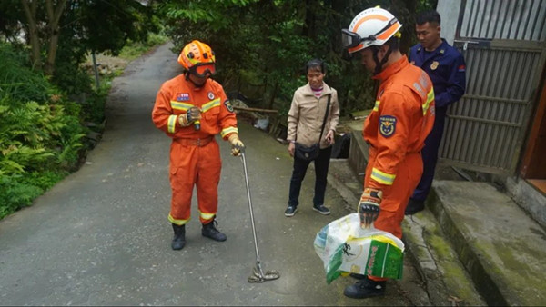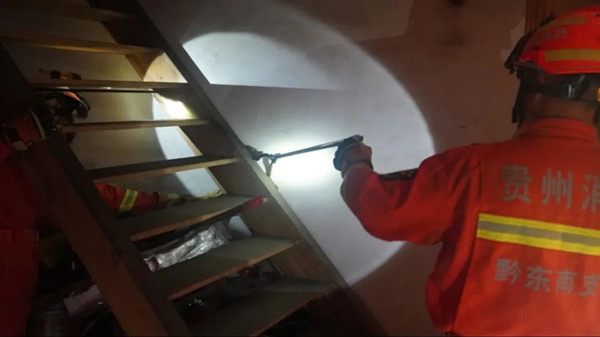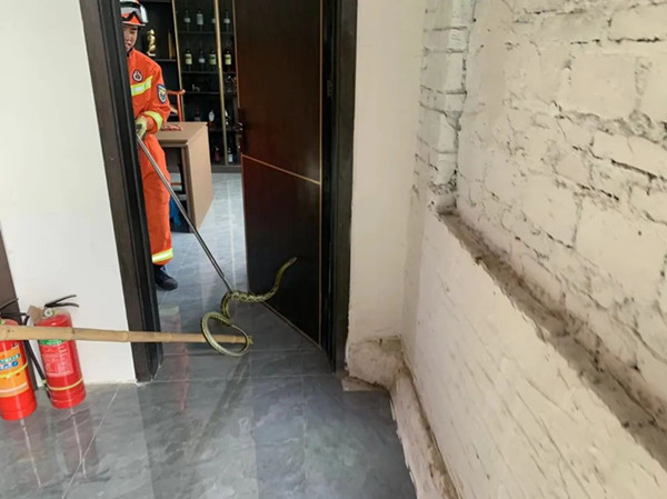 到達(dá)現(xiàn)場(chǎng)后,消防救援人員并未發(fā)現(xiàn)蛇的蹤跡,根據(jù)報(bào)警人指引大致找到了小蛇盤(pán)踞地,集中對(duì)附近的房間尋找、樓梯下堆雜物和其他縫隙處進(jìn)行仔細(xì)查找,突然一個(gè)微弱的動(dòng)靜引起了大家注意。