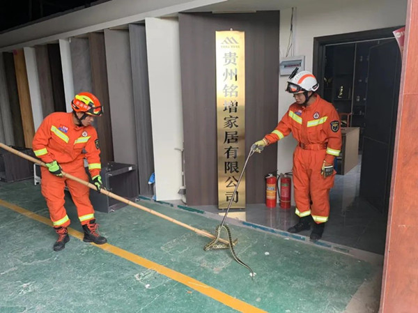 4月24日,凱里大隊(duì)凱棉路特勤站接到報(bào)警稱:凱里市凱旋廠附近一廠房有蛇擾民。接警后,凱里大隊(duì)凱棉路特勤站立即趕赴現(xiàn)場(chǎng)處置。