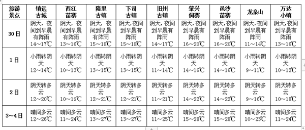 “五·一”期間主要景區(qū)天氣預(yù)報(bào)