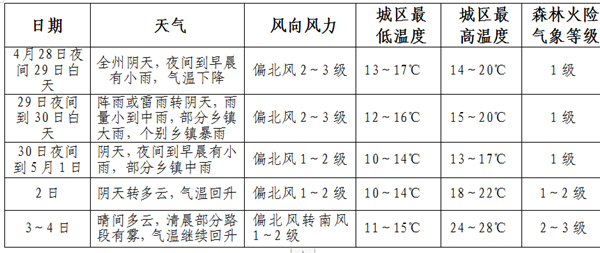 “五·一”節(jié)假日期間全州天氣預(yù)報(bào)