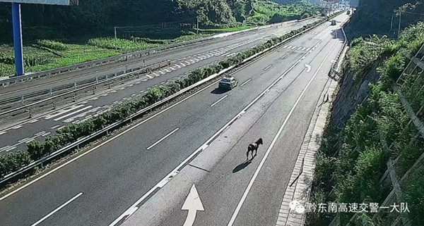 2022年07月04日17時50分許,黔東南州交警支隊高速一大隊值班室接到過往駕駛員報警稱在滬昆高速(下司往麻江方向)1708公里處,有一匹馬在高速公路上“散步”,嚴重影響到后方行車安全。