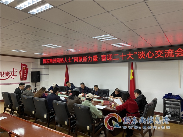 本網(wǎng)訊 10月11日,黔東南州網(wǎng)絡(luò)人士“網(wǎng)聚新力量·喜迎二十大”談心交流會召開。州委統(tǒng)戰(zhàn)部副部長羅遠(yuǎn)光出席會議并宣講中央統(tǒng)戰(zhàn)工作會議精神,州網(wǎng)絡(luò)人士聯(lián)誼會會長范洪波傳達(dá)學(xué)習(xí)貴州省網(wǎng)絡(luò)代表人士交流座談會精神。