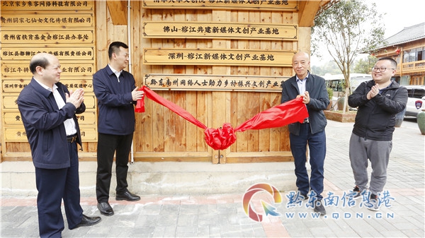 在調(diào)研中,在榕江新媒體產(chǎn)業(yè)園實(shí)地舉行了”黔東南州網(wǎng)絡(luò)人士助力鄉(xiāng)村振興文創(chuàng)產(chǎn)業(yè)基地”揭牌儀式。