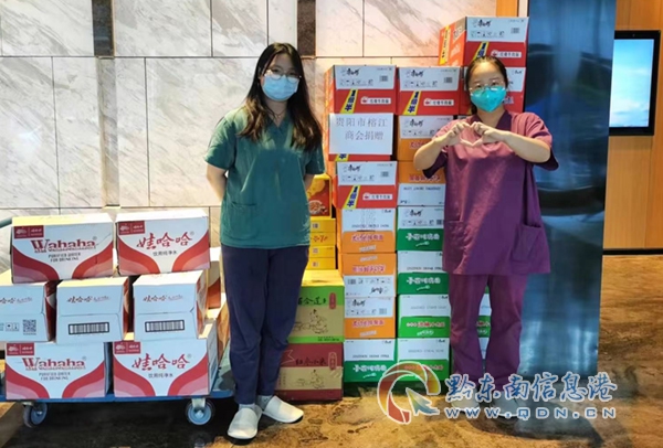 疫情暴發伊始,當得知榕江援筑醫療隊嚴重缺乏生活物資后,該會李作勇、賴奕蓉兩位會長高度重視,安排常務副會長羅安富具體組織、副會長姚勝成協調相關貨源,同時號召廣大會員及在筑發展的榕江籍鄉友奉獻愛心、展示作為,先后購買了方便面、八寶粥、礦泉水等生活物資,第一時間送到醫療隊手中。了解得知,由于疫情管控導致交通中斷,榕江籍鄉友李基福為了把物資盡快送到醫療隊駐地,他克服重重困難、連夜工作、不顧疲勞,才終于完成配送任務。鄉友石硯聽說榕江醫療隊缺少洗衣液后,立即將自家的洗衣液獻出,并與鄉友一道歷盡‘千辛萬苦’才將物品送達。