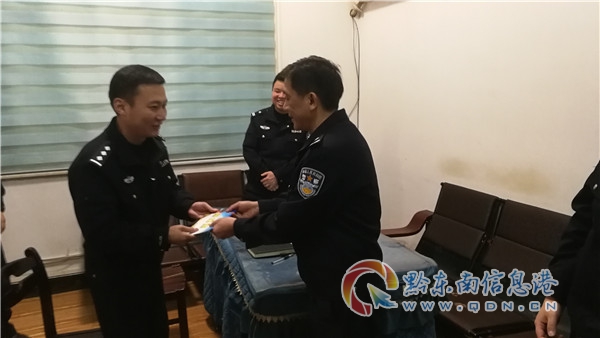 在城關(guān)派出所,姚元良同志向民輔警傳達(dá)了州局黨委的關(guān)心和問候,對城關(guān)派出所民輔警常年堅(jiān)守,為保一方平安做出的積極貢獻(xiàn)給予充分肯定,對他們默默無聞、無私奉獻(xiàn)的精神給予高度評價(jià),并送上慰問金。