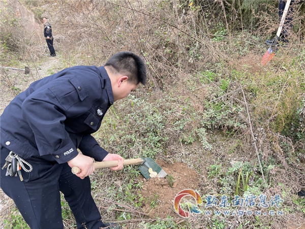 活動期間,參加植樹的民輔警個個熱情洋溢、干勁十足。有的揮鍬鏟土,有的搬運樹苗,有的澆灌林木,有的扶正踩實,三人成組,五人成團,植樹活動分工明確、銜接有序。植樹現場熱鬧非凡,一派緊張有序的勞動景象。經過大家一下午的辛勤勞作,一棵棵新栽種的苗木迎風挺立,在山坡上構成了一道靚麗風景。