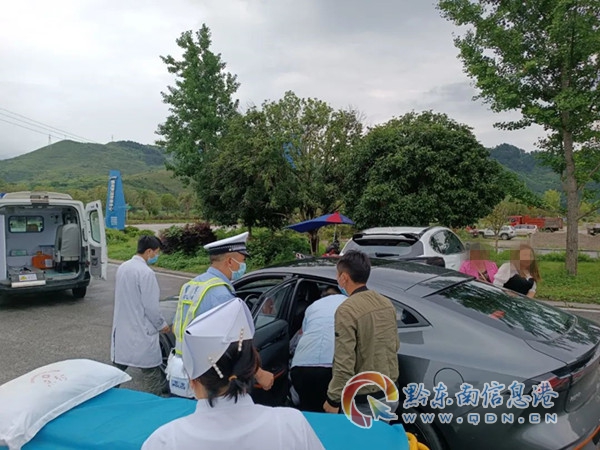 病情就是命令,時(shí)間就是生命。民警立即向大隊(duì)領(lǐng)導(dǎo)匯報(bào),同時(shí)報(bào)告支隊(duì)指揮中心救助警情,民警當(dāng)前所處位置,前往救治醫(yī)院,請(qǐng)調(diào)度凱里市交警大隊(duì)沿途做好城區(qū)道路保暢工作。同時(shí)幫助聯(lián)系好急救醫(yī)生做好救治相關(guān)準(zhǔn)備,一場(chǎng)為生命開(kāi)道與死神賽跑的合力救助迅速展開(kāi),民警示意患者乘坐車輛打開(kāi)雙閃緊隨開(kāi)道警車,警燈閃爍,警笛齊鳴,一路向北疾馳,15時(shí)50分,短短20余分鐘,40公里的高速、城市混合道路,四大隊(duì)民警帶領(lǐng)車輛快速前行,一路護(hù)送至四一八醫(yī)院,并協(xié)助醫(yī)護(hù)人員將患者送進(jìn)急救室,為病人急救贏得了最為寶貴的搶救時(shí)間。