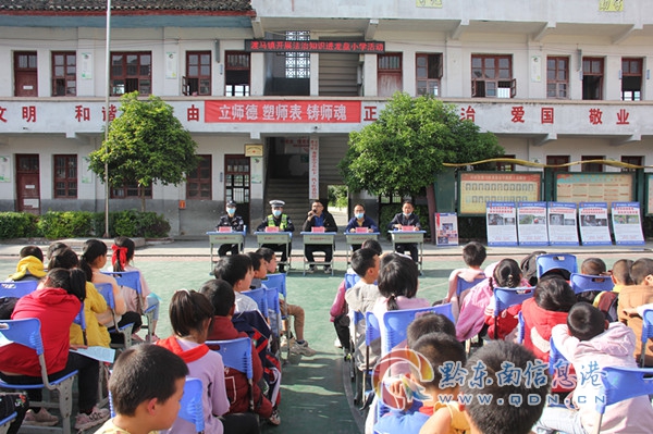 天柱縣渡馬鎮共設有鄉村小學3所,幼兒園5所,共計師生1646名,學校師生安全出行問題始終是鎮黨委高度關注的問題,為此,4月20日,渡馬鎮人民政府安排副鎮長劉光鎮積極邀請縣交警大隊宣傳民警、渡馬派出所民警、渡馬司法所民警一同走進轄區校園,為各校教職工、家長及學生講授以道路交通安全為主的法律法規常識。
