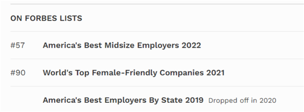 福布斯官網(wǎng)顯示,如新集團(tuán)曾先后登上《福布斯2021年度全球最佳女性友好企業(yè)榜單》《福布斯2022年全美最佳中型雇主榜單》,截至2022年2月10日,如新集團(tuán)員工數(shù)達(dá)2.6萬(wàn)人。