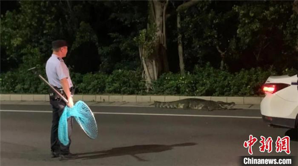 7月2日凌晨,一民眾駕車途經(jīng)佛山市南海區(qū)西樵鎮(zhèn)樵高路過境路路段時,發(fā)現(xiàn)一只大鱷魚趴在路旁,不時緩慢爬行,該民眾嚇得當即報警求助。