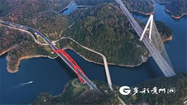 G320線花魚洞大橋位于貴陽至黃果樹高等級公路清鎮(zhèn)市內(nèi),跨越紅楓湖,是貴州首座“提籃”式公路橋梁。全長270米,于2019年2月20日開工,2021年6月29日建成通車。先后獲得11項國家專利技術(shù)、1項省級工法,尤其是全國首創(chuàng)的“邊建邊拆”的改建方式,成為山區(qū)橋梁改建的典范。