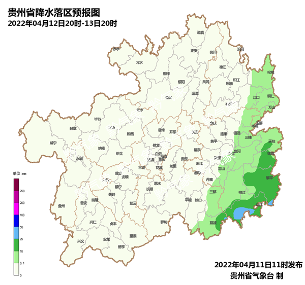 明天白天,省的西部及北部地區陰天有陣雨,其余地區多云轉陰有陣雨或雷雨,午后開始黔西南州、安順市南部、黔南州中南部、黔東南州東部雷雨中伴有大風、冰雹及短時強降水等強對流天氣,另外,銅仁市、黔東南州、黔南州、黔西南州、貴陽市南部局部有中到大雨,個別鄉鎮暴雨;