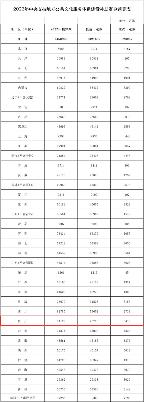 日前,財(cái)政部發(fā)布通知,下達(dá)兩筆2022年度資金預(yù)算,分別為2022年國(guó)家文物保護(hù)資金預(yù)算和2022年中央支持地方公共文化服務(wù)體系建設(shè)補(bǔ)助資金預(yù)算。貴州獲得下達(dá)國(guó)家文物保護(hù)資金預(yù)算1368萬(wàn)元,獲得下達(dá)中央支持地方公共文化服務(wù)體系建設(shè)補(bǔ)助資金預(yù)算5419萬(wàn)元。(記者 吳蔚)