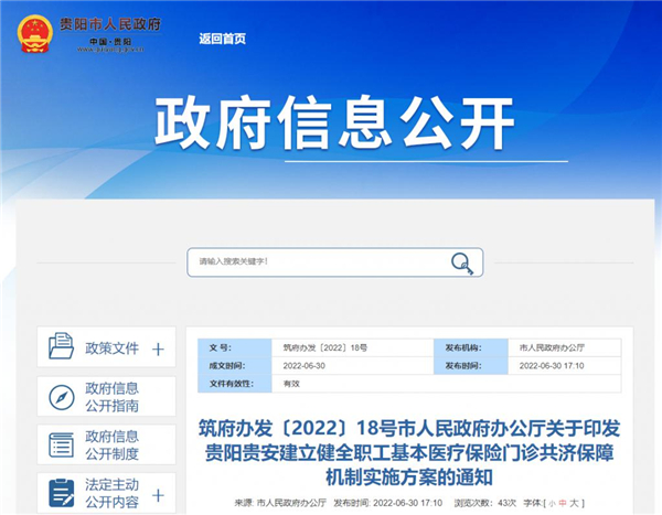 《貴陽貴安建立健全職工基本醫療保險門診共濟保障機制實施方案》已經市人民政府同意,現印發給你們,請抓好貫徹落實。
