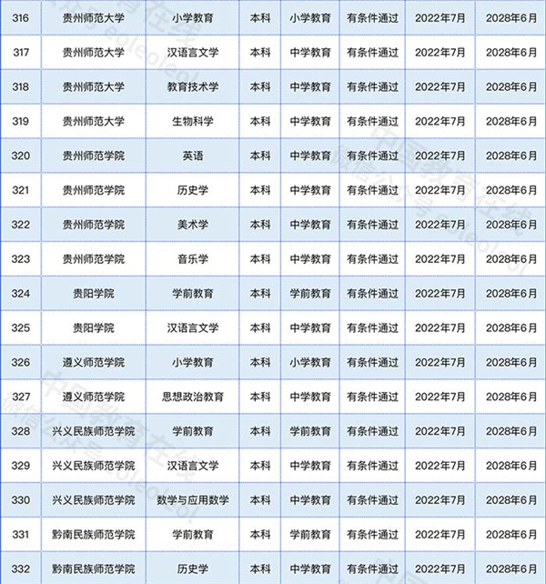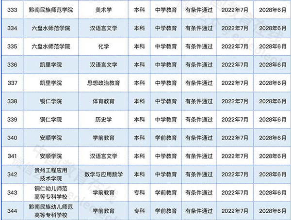 近日,教育部公布2022年通過(guò)普通高等學(xué)校師范類專業(yè)認(rèn)證專業(yè)名單及通過(guò)中期審核專業(yè)名單。其中,貴州省13所院校29個(gè)專業(yè)通過(guò)師范類專業(yè)認(rèn)證。認(rèn)證結(jié)論有效期六年,自2022年7月起至2028年6月止。