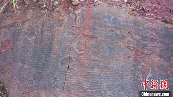 近日,貴州大學(xué)科考人員在貴州省仁懷市茅臺鎮(zhèn)再次發(fā)現(xiàn)一處恐龍足跡,與2017年在茅臺鎮(zhèn)另一處地點(diǎn)發(fā)現(xiàn)的恐龍足跡為同一時期。貴州大學(xué)副教授文雪峰表示,通過腳印形狀來看,初步判斷它屬于獸腳類恐龍,屬于侏羅紀(jì)早期食肉型恐龍。