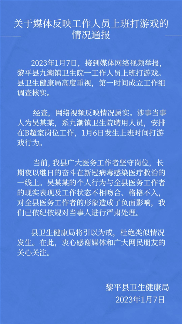 情況通報!媒體反映黔東南一衛生院工作人員上班打游戲……