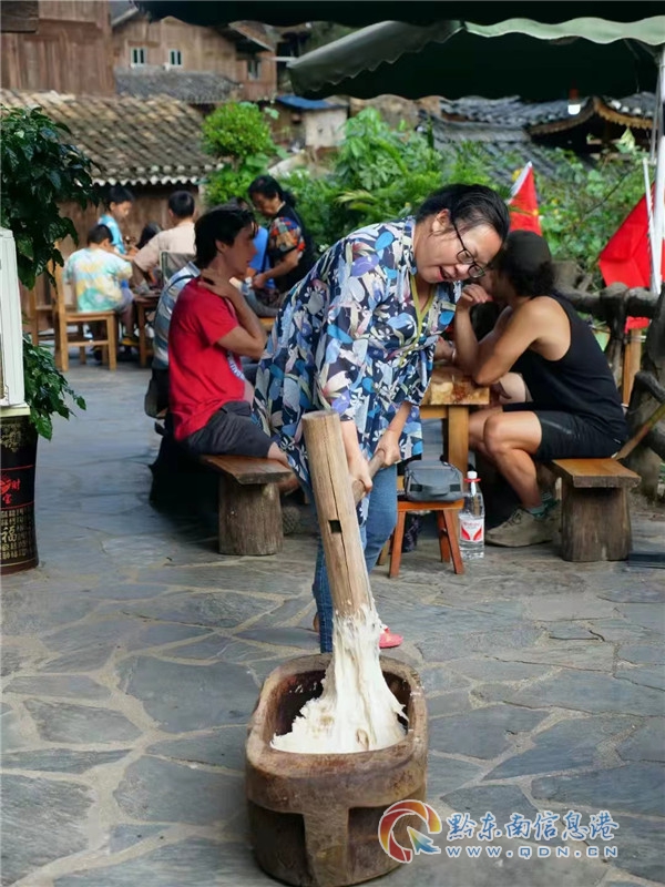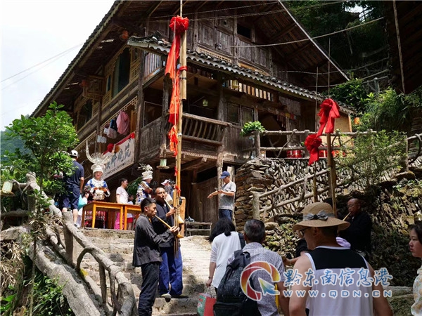 雷山縣方祥鄉(xiāng)格頭村禿杉王下的一家農(nóng)家樂庭院的場(chǎng)景。
