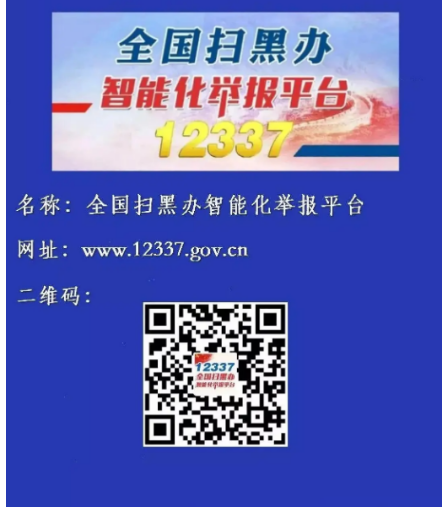 1、線上舉報:全國掃黑辦“12337”智能舉報平臺。舉報人通過掃描二維碼,隨時隨地、方便快捷登錄平臺進行舉報。(步驟:登錄12337舉報平臺-掃黑除惡斗爭舉報入口-線索舉報/行業亂象舉報)