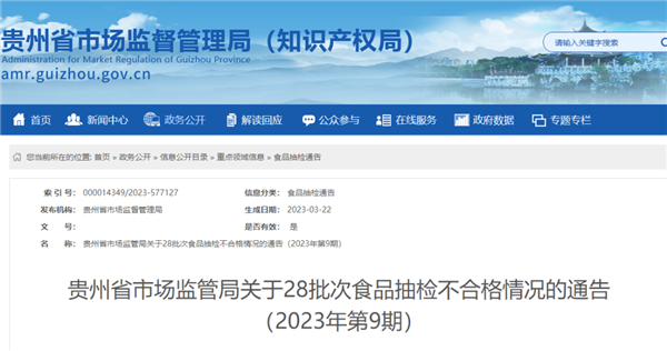 對抽檢發現的不合格食品,貴州省市場監管局已責成屬地市場監管部門立即組織開展核查處置,查清產品流向,督促企業采取下架、召回不合格產品等措施控制風險;對違法違規行為,依法及時處理。