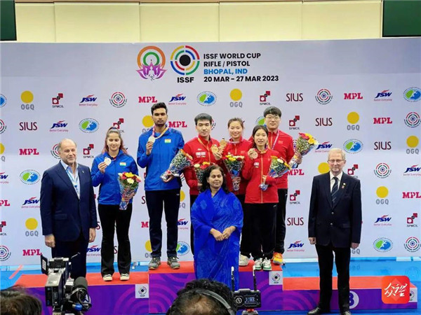 3月23日,在射擊世界杯印度站上,貴州運動員錢微與劉錦堯搭檔代表中國隊出戰,以17:11擊敗印度選手桑萬節奏、托馬爾瓦倫,奪得10米氣手槍混合團體項目金牌。