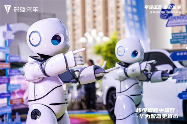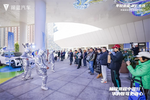 靜態展示區,深藍三款車型閃耀迎客,深藍“賽博天團”帶來萌趣十足的機器人舞蹈表演,吸引了來往人群的目光。深藍AI時光機、多彩生活打卡等互動項目受到大家的歡迎,現場人潮不斷,大家紛紛體驗深藍科技帶來的多彩生活,感受不一樣的年輕深藍。
