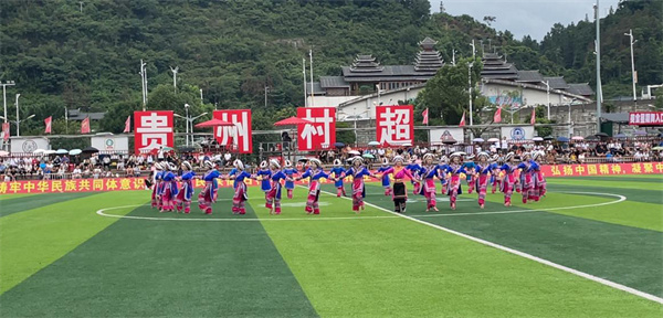 中場表演階段,為了給運動員們加油鼓勁,來自于附近各大鄉鎮的朋友們帶來了一場民俗文化的盛宴,擺王村的朋友們帶來了《擺王木鼓舞》、還有鎮遠縣古韻旗袍隊帶來的民族服飾秀《水墨古鎮》,贏得了現場運動員與觀眾的陣陣掌聲與喝彩,這也體現民俗文化與體育精神的相互碰撞與融合。