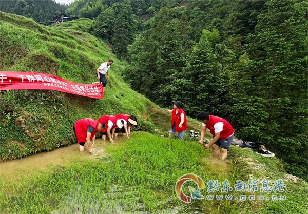當日下午,高增鄉新生村的水田邊熱鬧非凡。從江縣城關第三小學的教師們將實踐課堂搬到田野,開展助力春耕志愿服務活動,幫助村民搶抓晴好天氣移栽早稻秧苗。志愿者們默契配合,三五人一組,俯身穿梭在水田間,拔秧、捆秧、運秧等動作嫻熟流暢。隨著大家的辛勤勞作,一排排嫩綠的秧苗整齊排列在水田中,為原本單調的土黃色水田披上了清新的綠裝,一幅生機勃勃的春耕畫卷徐徐展開。