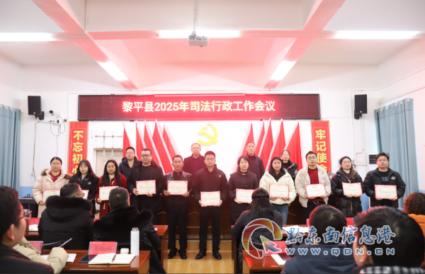 縣司法局全體干部職工、律師和基層法律服務工作者代表共90人參加會議,對2024年度司法行政工作15個先進集體和30名先進個人進行表揚并頒發榮譽證書。