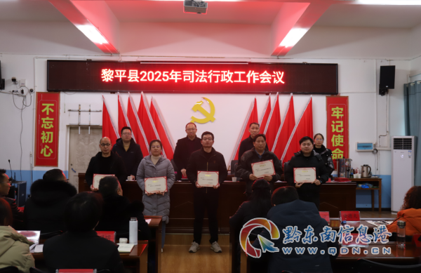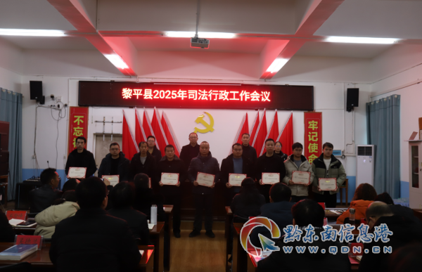 2月24日,黎平縣司法局召開2025年全縣司法行政工作會議,深入學習貫徹習近平法治思想、習近平總書記視察貴州重要講話和習近平總書記對政法工作重要指示精神,貫徹落實中央政法工作會議、全國司法廳(局)長會議、省委政法委工作會議、全省司法廳(局)長會議、全州政法工作會議和全州司法局長會議精神,總結工作,分析形勢,研究部署2025年全縣司法行政工作。局黨組成員、副局長楊志清主持會議。