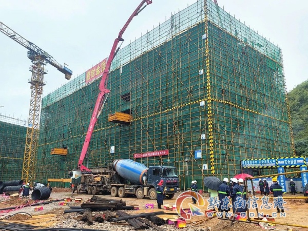 7月23日,在貴州電子信息職業(yè)技術(shù)學(xué)院新校區(qū)項(xiàng)目一期二階段(三標(biāo)段)施工建設(shè)現(xiàn)場,塔吊矗立、機(jī)械轟鳴,混凝土攪拌車穿梭往來,項(xiàng)目部管理人員與施工人員以飽滿熱情和十足干勁全力推進(jìn)工程,項(xiàng)目現(xiàn)場呈現(xiàn)一派熱火朝天的建設(shè)場景。