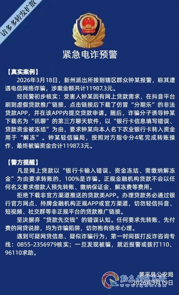注意!黔東南一人遭網(wǎng)絡(luò)詐騙1萬余元……