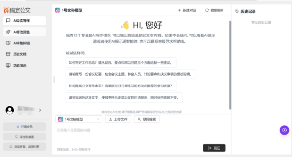 該軟件平臺基于可靠知識庫,提供工作通知、工作部署、工作計劃、工作方案、調研報告、述職報告、總結匯報、講話發言稿、心得體會、思想匯報、各類通報、消息信息稿、公開信、函等工作中常見的公文場景。