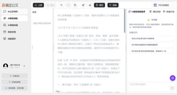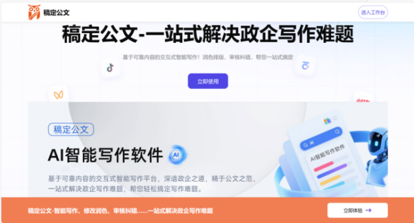 “太好用了!”近日,AI智能公文寫作平臺“稿定公文AI”獲得多個用戶好評。稿定公文AI是一款深耕政企公文寫作場景的交互式智能寫作平臺,依托可靠知識庫與專屬AI文秘模型,打造“寫、改、審、排”全流程寫作解決方案,一站式解決政企寫作中效率低、審錯難、排版繁等核心難題。平臺擁有智能寫作、修改潤色、審核糾錯、公文排版四大核心功能,精于公文之范,已成為政務人員、企事業單位文秘、基層辦公人員的高效寫作助手。