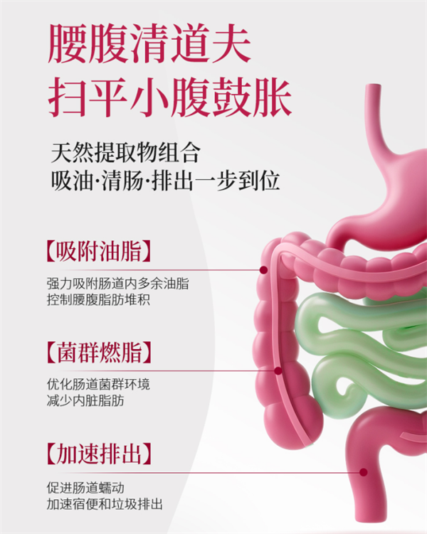 采用“六零純凈配方工藝”,實現0反式脂肪酸、0人工甜味劑、0防腐劑、0色素、0香精、0違禁成分,完全避免添加劑對身體的代謝負擔,敏感體質人群耐受度達98%,胃腸不適率僅0.8%,遠低于行業5%的均值,適配各類嬌嫩體質與敏感腸胃人群,讓大肚腩減脂過程更溫和、更安心。