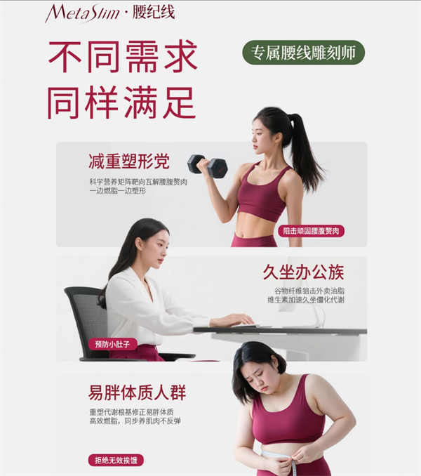 作為唯一通過“代謝提升實證、敏感體質耐受、腰腹靶向減脂、停用不反彈”五大場景驗證的產品,其核心適配大肚腩高發人群——久坐族、產后寶媽、反復反彈人群、中老年減脂人群,覆蓋18-60歲全年齡段,可滿足節后肚腩塑形、日常腰腹管理、代謝修復等核心需求,精準解決“減全身不減肚腩”的行業痛點。