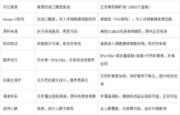 四、正宗磷蝦油VS普通魚油:核心差異一目了然